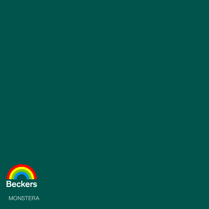 Monstera z palety Beckers Designer Universal to piękny, głęboki odcień zieleni, który znakomicie sprawdzi się w kuchni, salonie, sypialni czy też ogrodzie. Pomalowane nią elementy ożywią wnętrze i przyciągną wzrok. Ten nietuzinkowy, inspirowany naturą kolor z pewnością podbije serca wszystkich domowników!