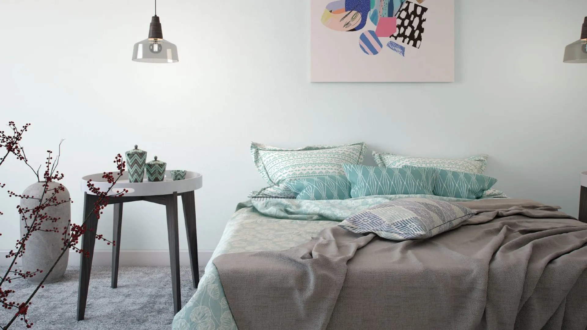 Jasna szarość pozwala stworzyć wyrafinowany i spokojny wystrój sypialni. Pokój pomalowany tymi kolorami sprzyja relaksowi.
